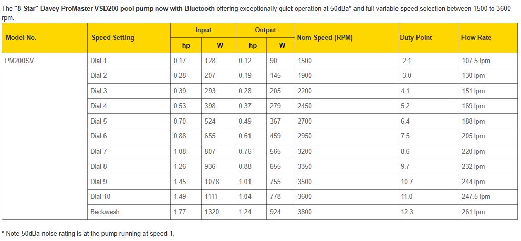 The Davey ProMaster Bluetooth VSD200 Pool Pump offers the pool owner and operator total control over the speed at which the pump needs to operate. Simply turn the dial to achieve the ideal speed setting for your situation. Now with Bluetooth control via the Davey Pool Pump App.
